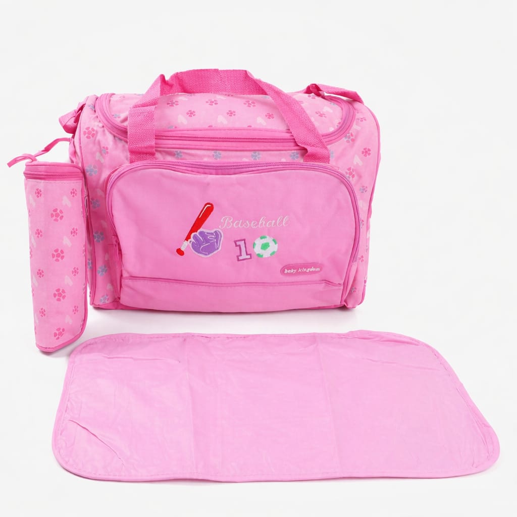 Make your baby care easier and more organized with this Baby Diaper Bag Set. This complete set includes a spacious main bag, a soft changing mat, and a feeder bottle cover, giving you everything you need while traveling or going outside.