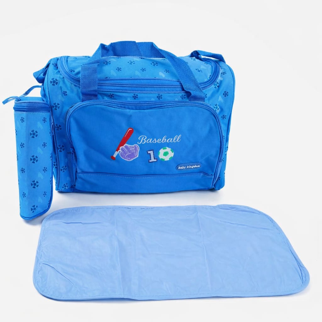 Complete baby diaper bag set with main bag, changing mat, and feeder bottle cover. Stylish, spacious, and perfect for travel and daily baby care.