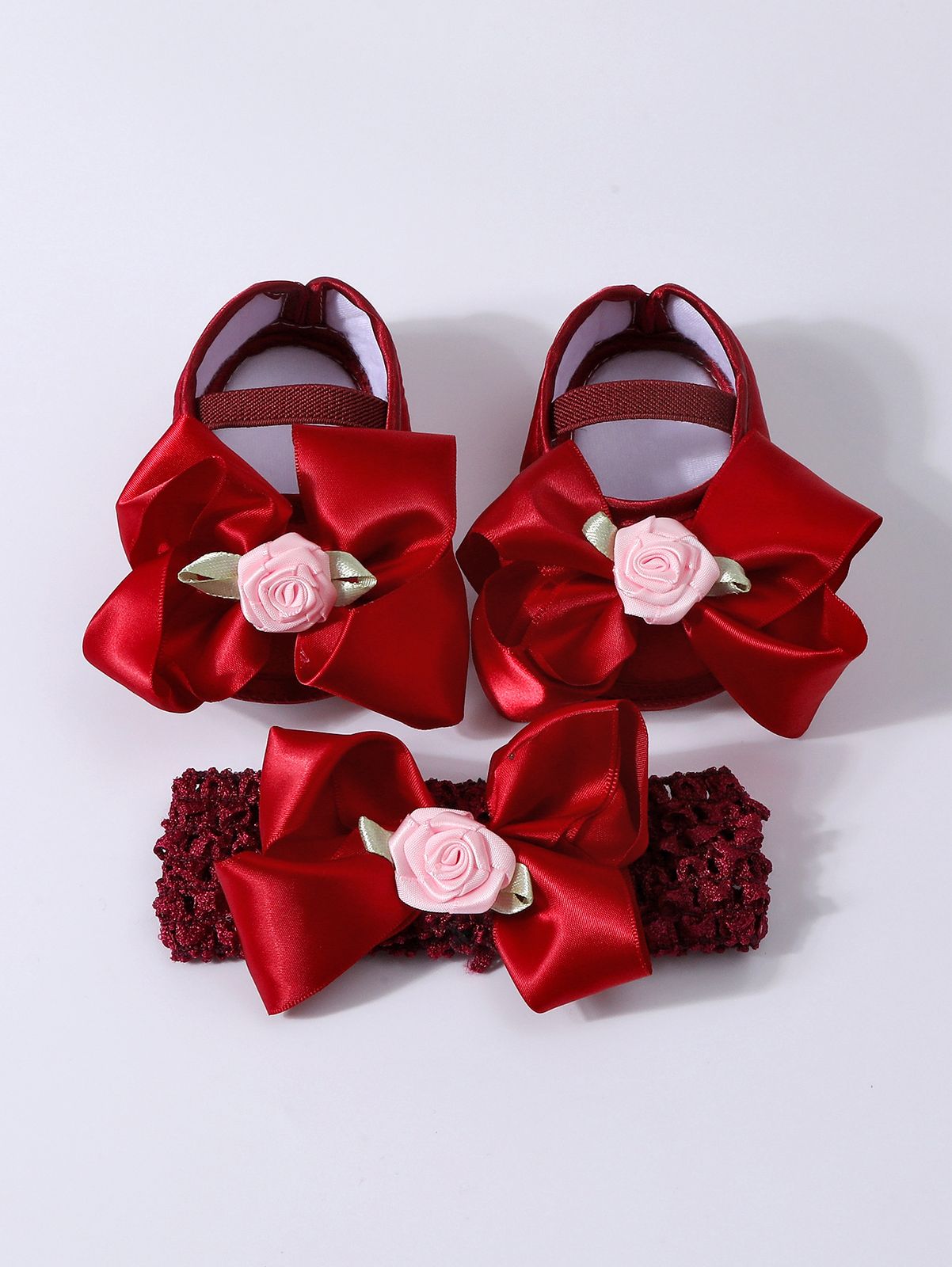 Baby Ribbon Bow Shoes & Headband Set (0–12 Months)